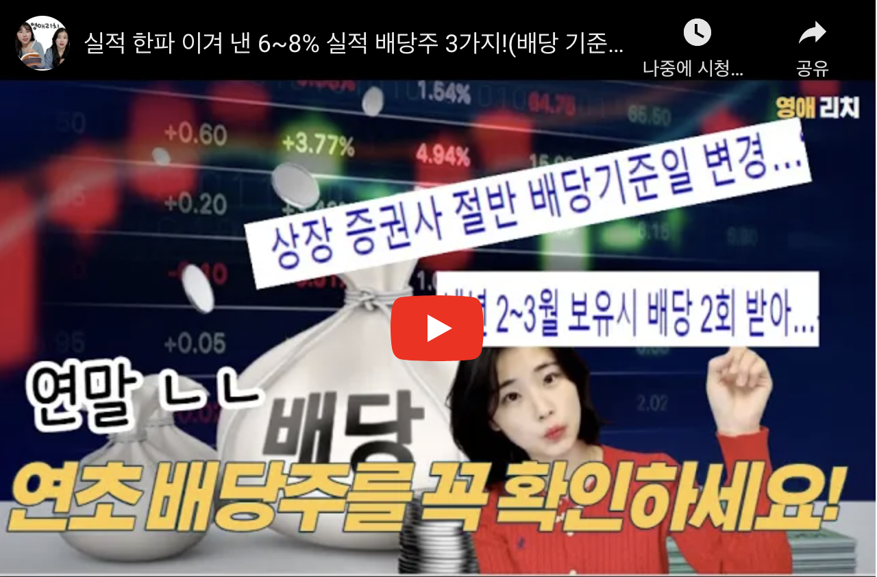 2023 12월 실적 한파 이겨 낸 6~8% 실적 배당주 3가지!(배당 기준일을 꼭 확인하세요) feat. 영애리치